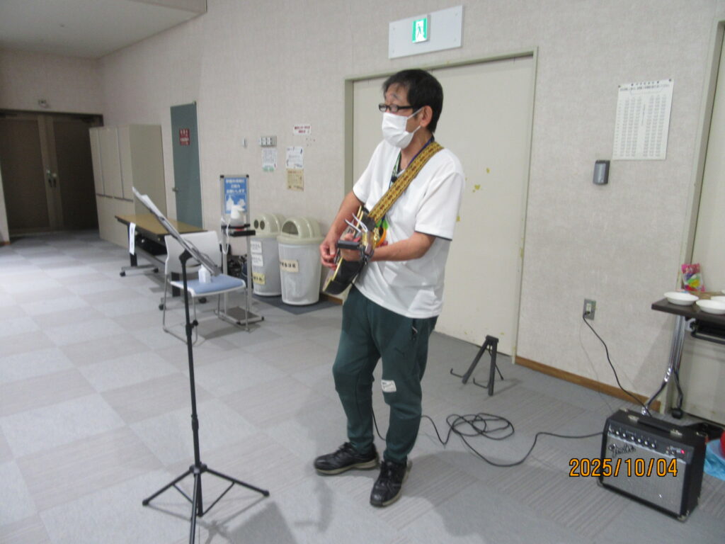 第1部はケアレクリエーション倶楽部会長の南部広司氏を迎え、福祉の現場で実践しているレク財の体験を行いました。ギター演奏による歌を唱いながら身体を動かす楽しさの体験や指先を使ったレク財等、現場にマッチさせる工夫が随所に施され、施設職員の参加者も思わずうなる、濃い研修ができました。