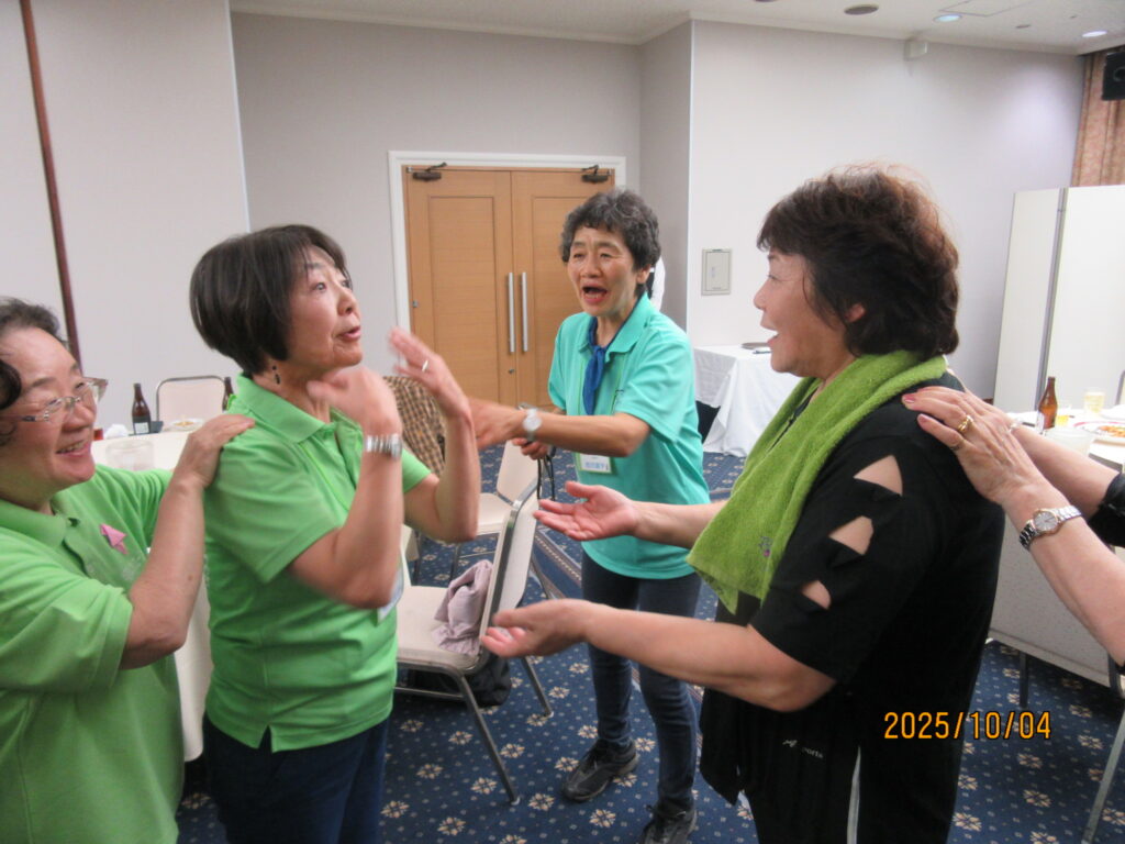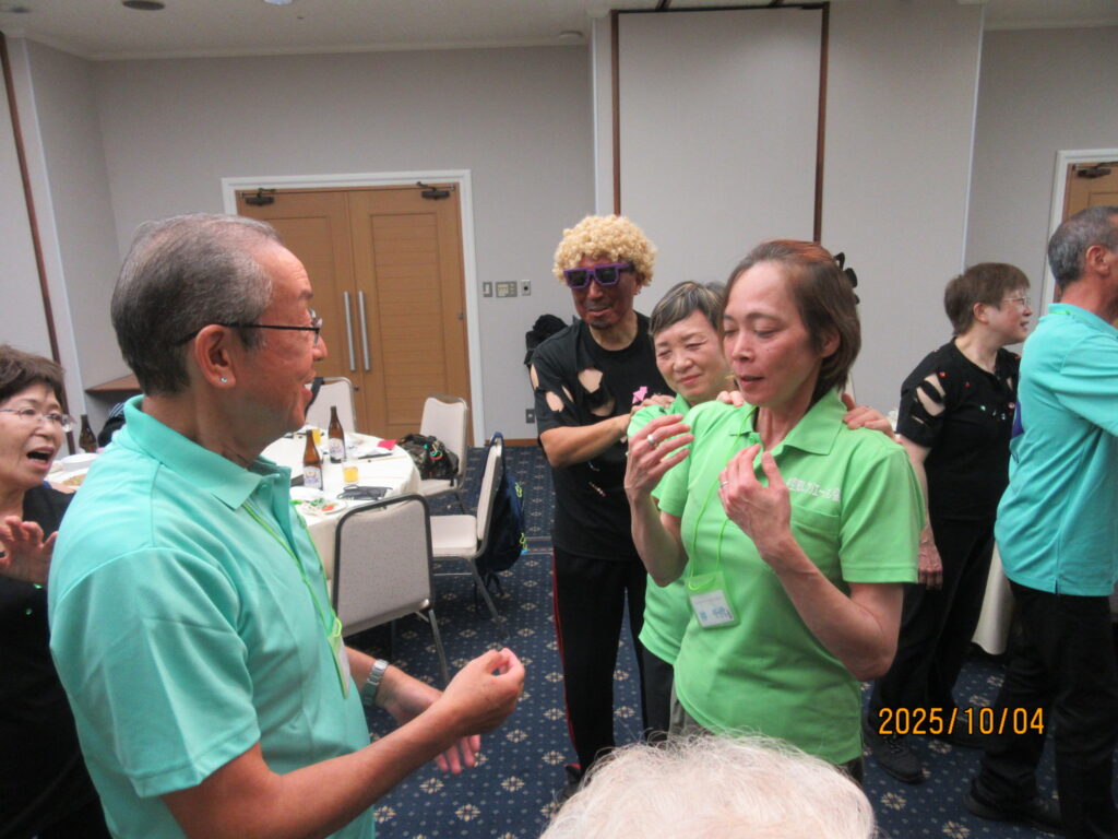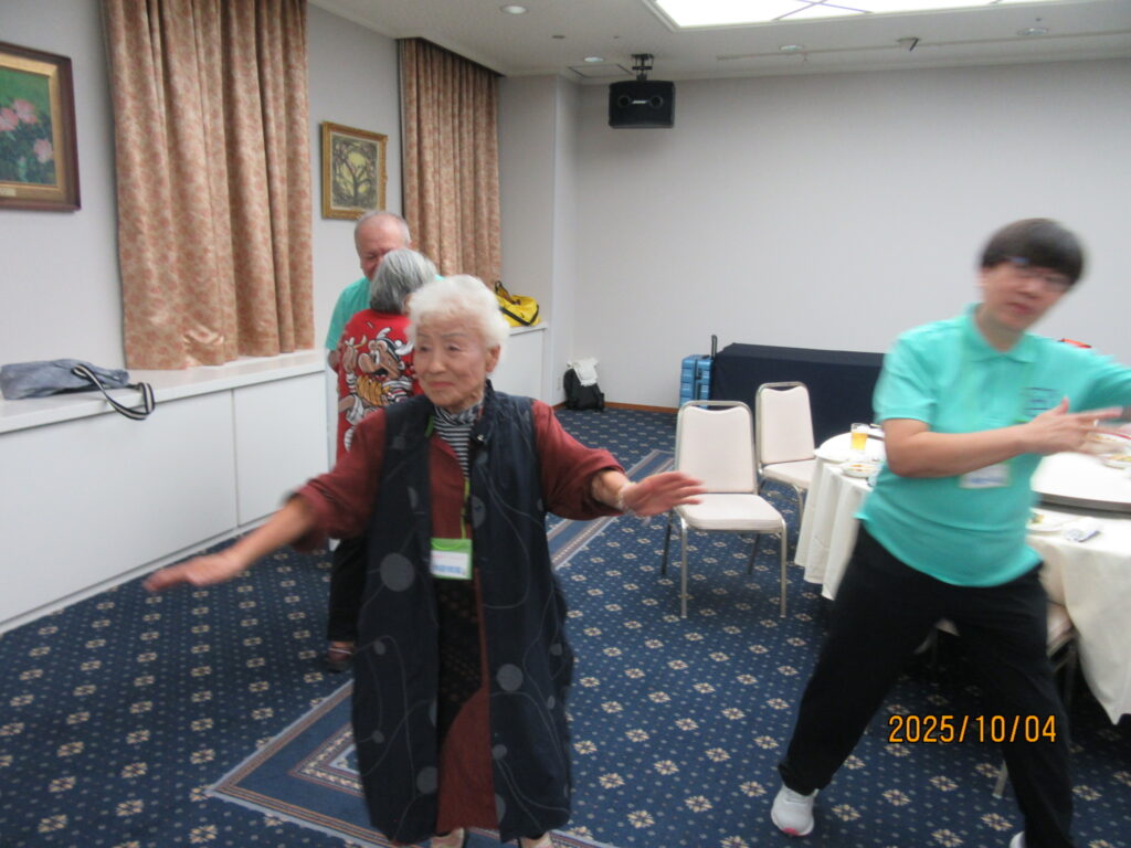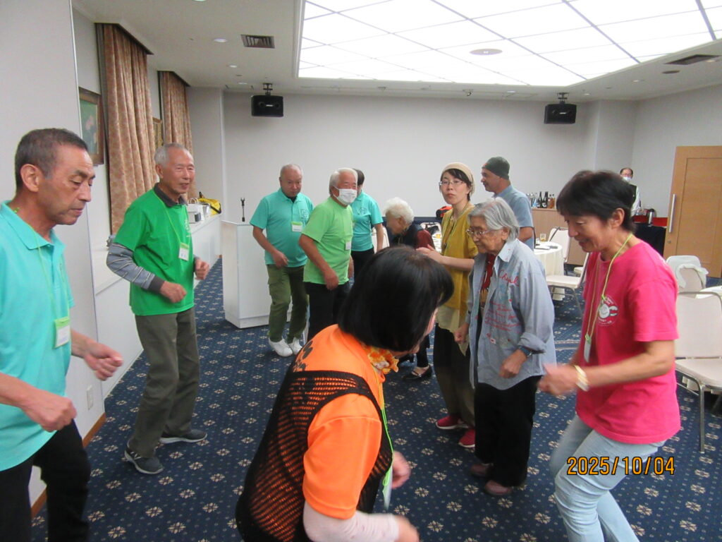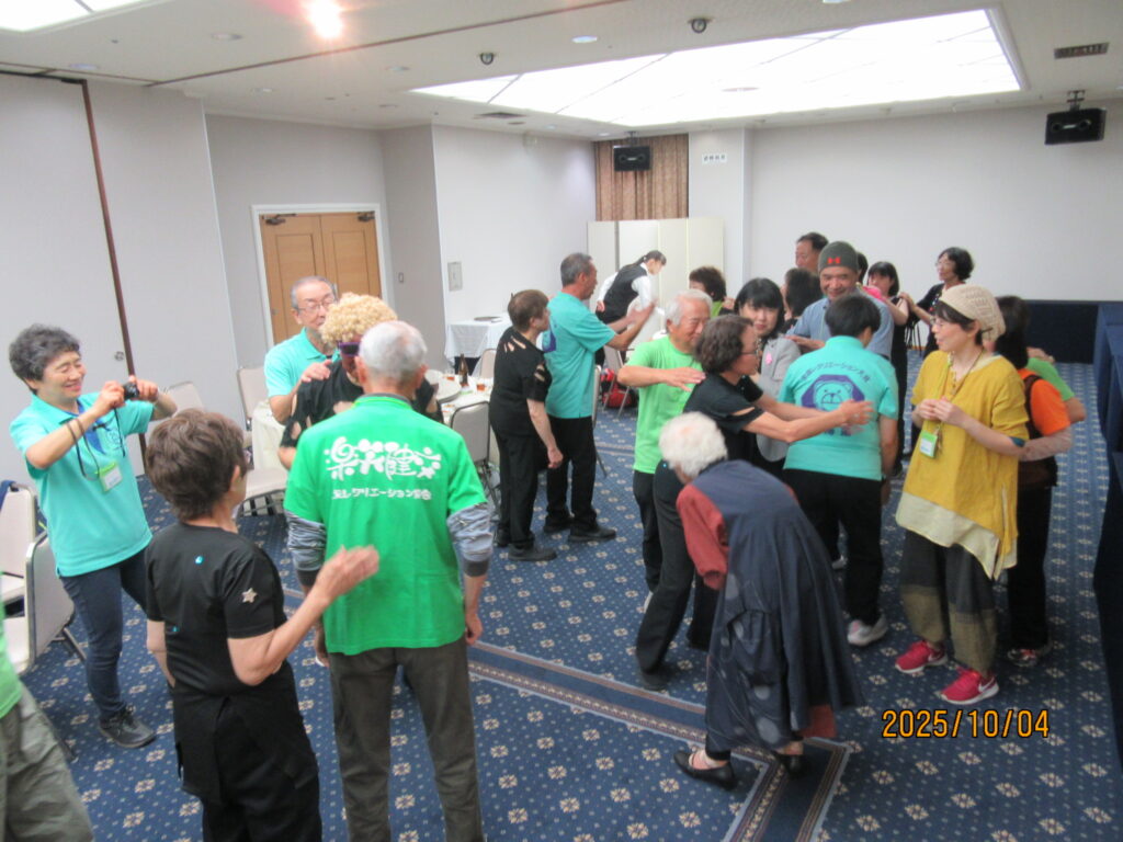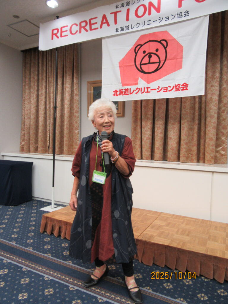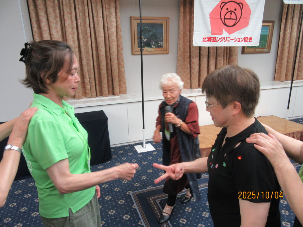 10月5日~6日、札幌市社会福祉総合センターで行われました。コロナ禍後札幌で開催するのは3回目。今回は、昨年度のレク・インストラクター養成講習会の演習発表で最優秀の山本瑠美と仲間達のダンスから始まり、だれでもいつまでも楽しめる伝筆(つてふで)を学習。日レクのおうちで60秒チャレンジの体験をし、軽く身体を動かしました。その後はホテルノースシティに会場を移し、情報交流会。2日目は、バルーンアートの体験をしました。ダンスで手に手をとりながら笑顔がはじけ、60秒チャレンジではうまくいかない場面に笑いがあふれ、バルーンアートでは風船の扱いに苦戦すし爆笑の嵐が巻き起こる感動の大会となりました。