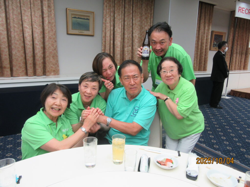 白熱した試合の結果は?   優勝チームのワンショット 会長と理事長が入るチームが優勝